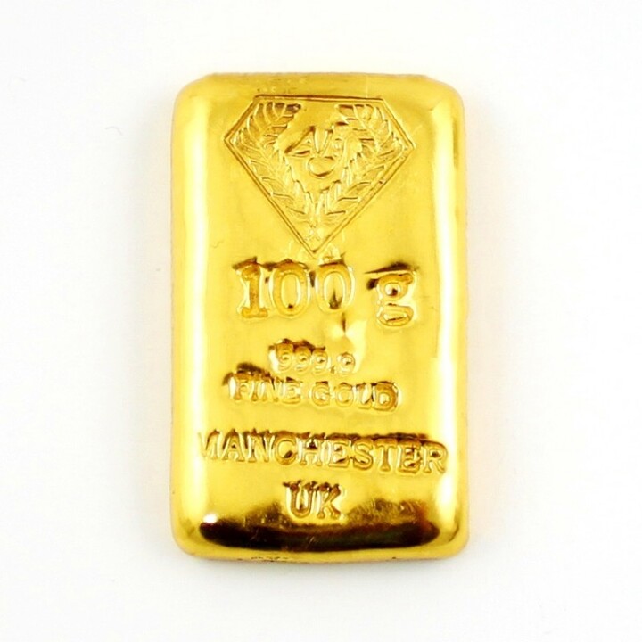 The value of a gold bar 100 gram is based on the current spot price of gold.